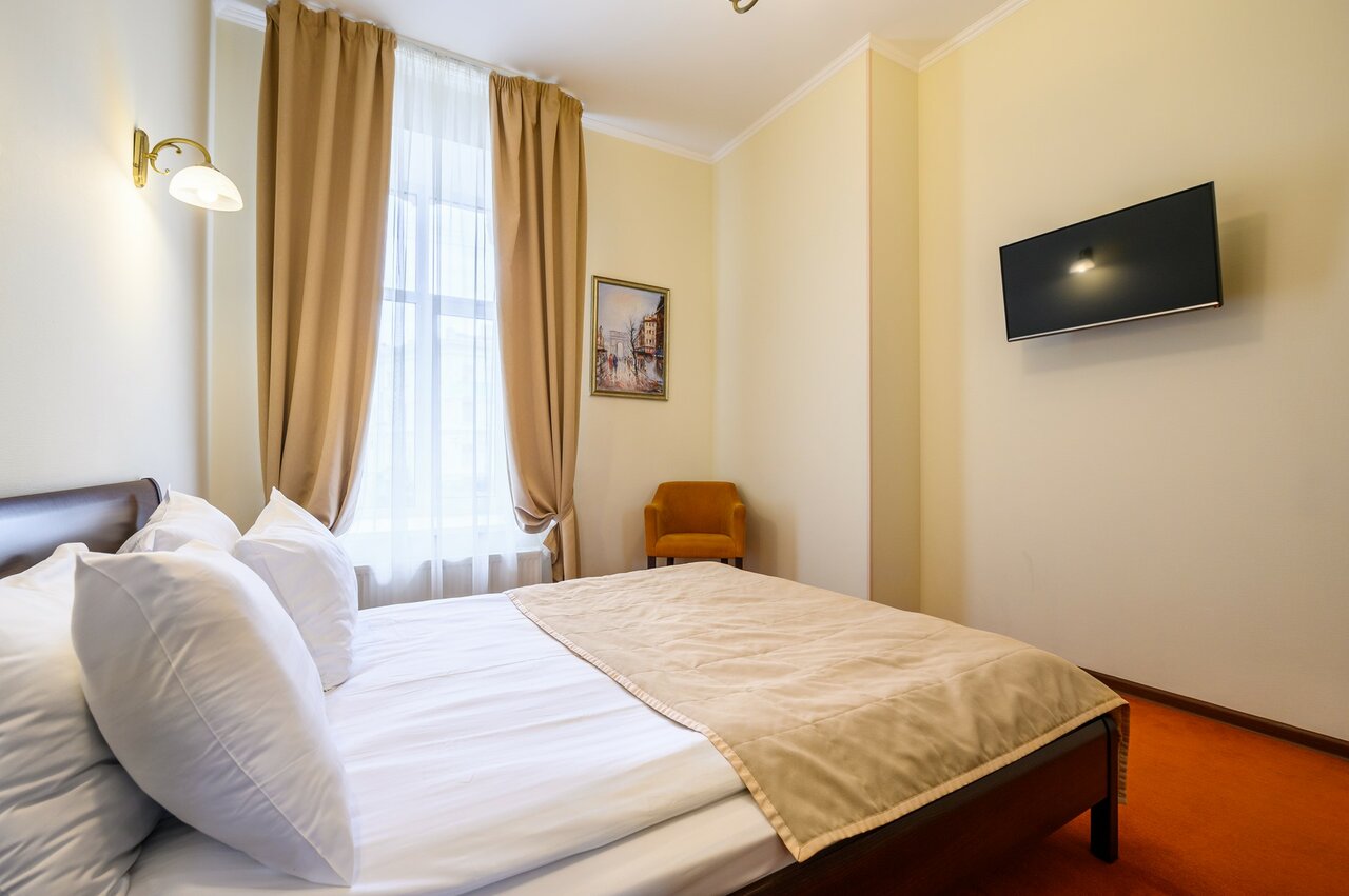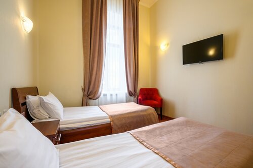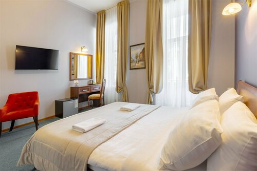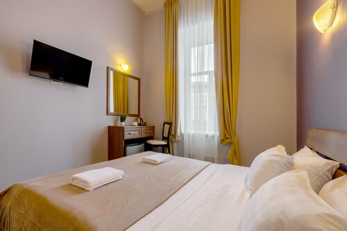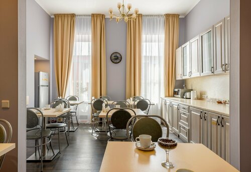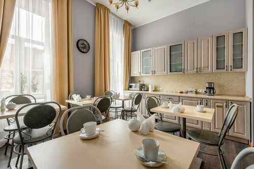 Удачное расположение в самом центре города, в красивом старинном здании. В шаговой доступности находятся основные достопримечательности: Эрмитаж, Исаакиевский собор, Юсуповский дворец, Центральный военно-морской музей, Мариинский театр и т.д. Находится на третьем этаже здания (Лифта в здании нет, но нужно отметить очень комфортные низкие ступени). Дружелюбный и приветливый персонал. Имеется общая кухня, микроволновка, есть возможность взять номер с питанием. В самих номерах чисто, регулярно проводится уборка, есть фен, чайник, умные телевизоры. Часть номеров выходит окнами во внутренний двор, но основная масса - на набережную реки Мойки, будет возможность любоваться рекой и проплывающими кораблями.
