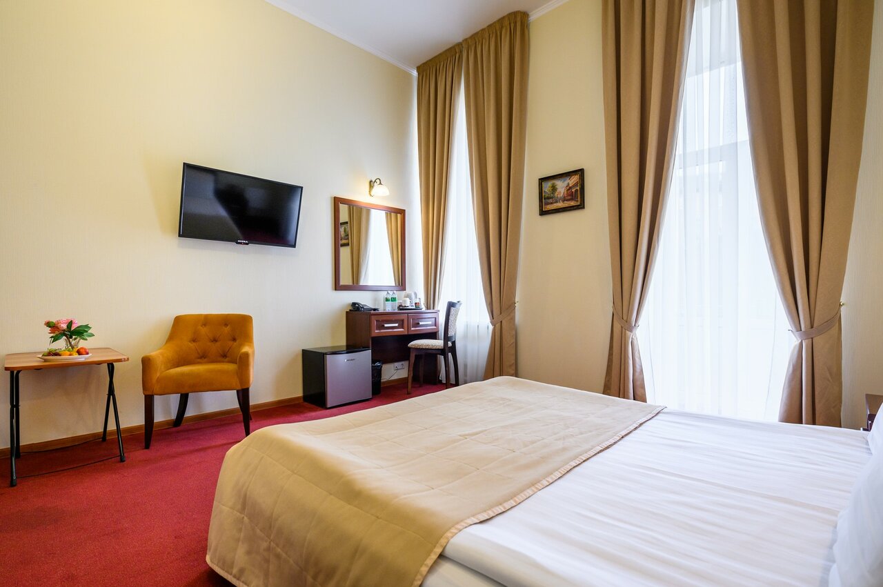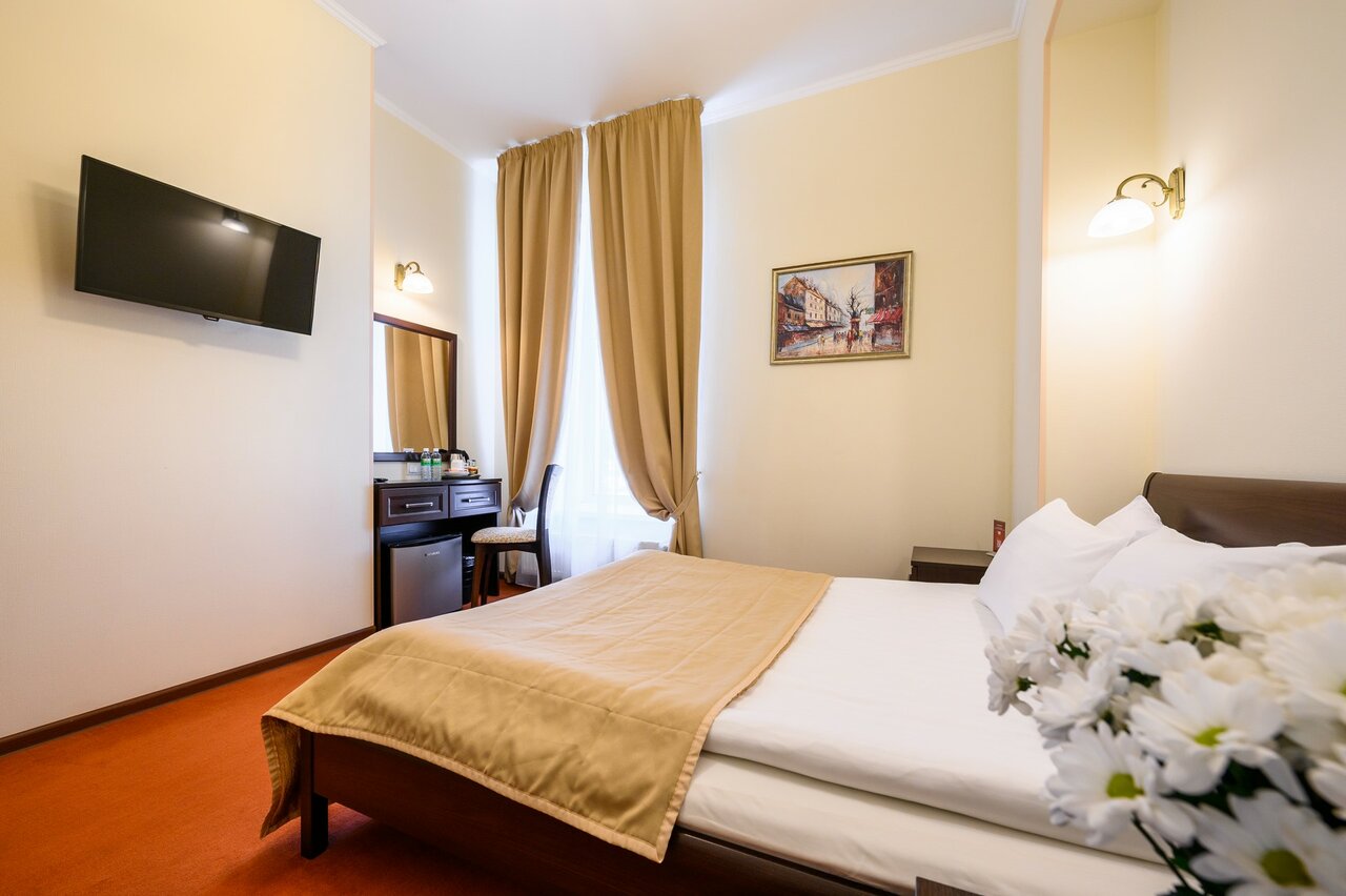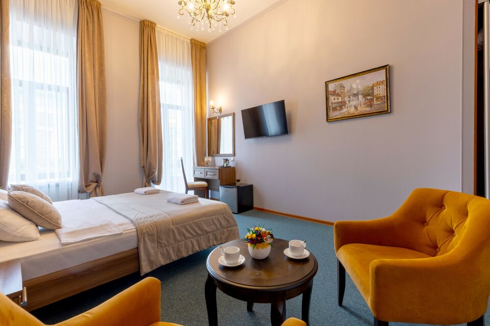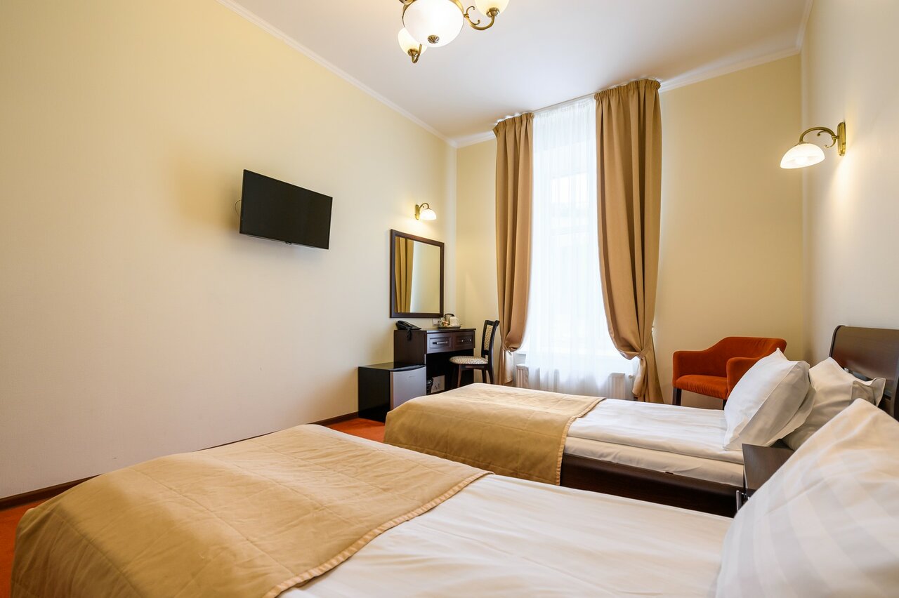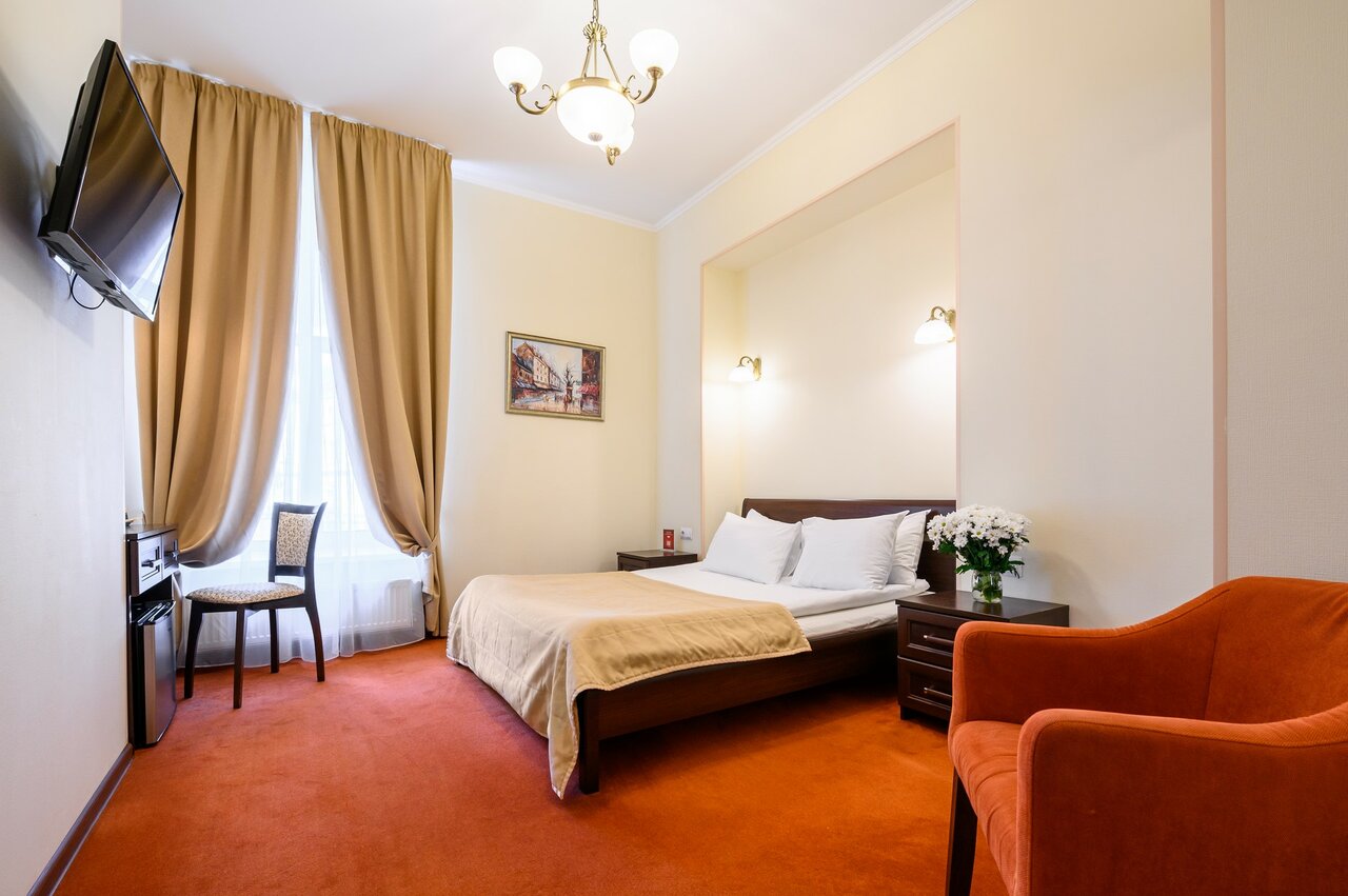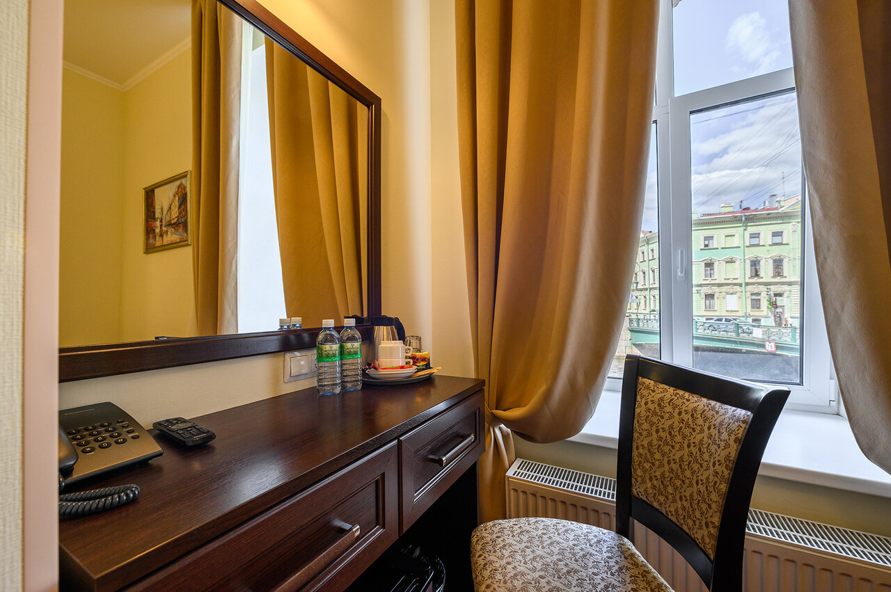 Обстановка номера в целом на 4, но для Питера номер достаточно большой.